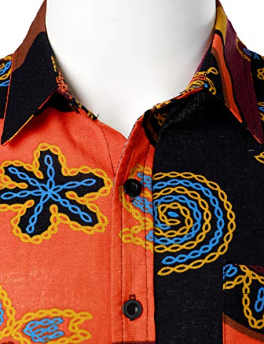LucMatton Camicie hawaiane da uomo in cotone e lino con stampa tradizionale a maniche corte, Giallo, XL