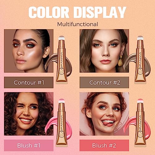 Lucoss Blush Liquido Contour Correttore Stick Blush in Crema con Applicatore Cuscino Aggiornato,Fard Crema Viso Makeup Naturale Miscelabile,Non Staccabile