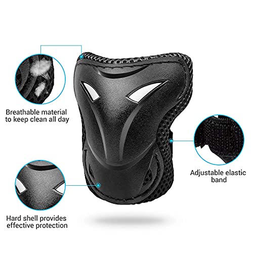 LUCTHY Ginocchiere per bambini 3-13 anni Ginocchiere Ginocchiere 6 in 1 Set di protezioni per BMX Bike Skateboard Skating Rollerblading (nero)