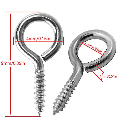 LUCY WEI 100pcs Pins d'occhio Vite Occhielli,Acciaio Inossidabile Perno a Vite Ganci per Fai-da-Te Creazione di Gioielli Legna Resina Charm,9 * 4mm(Argento)