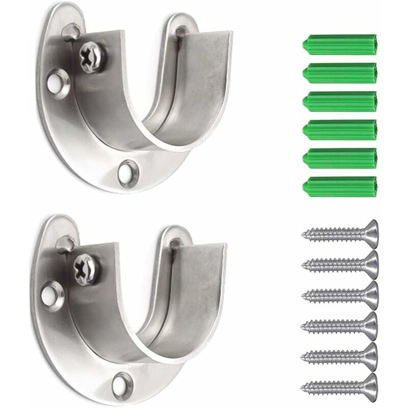 La staffa ha una vite sul lato per stringere contro l'asta in modo che l'asta non scivoli. Applicato non solo in bagno, ma anche in armadio, balcone, tenda. Specifiche: Colore: argento Materiale: acciaio inossidabile Dimensioni: 5 * 5.8 * 2.2 / 1.97 * 2.17 * 0.87 pollici foro al foro: 45 mm diametro del tubo: 25 mm La confezione include: 2 x bussole a labbro aperto 6 x viti di montaggio 2 x regolazione Viti 6 tubi di espansione