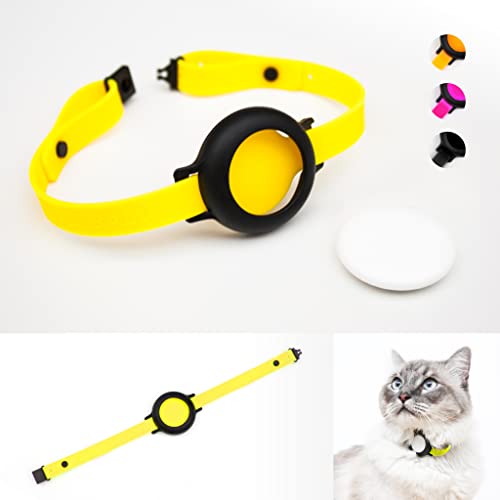 LucyBalu Nemo - Collare per gatti con chiusura di sicurezza compatibile con Apple AirTag, sicuro, leggero, comodo, cinturino in silicone, colore giallo neon