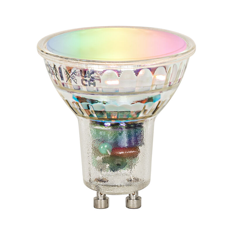 LUEDD Lampada LED Smart GU10 RGBW 4.5W 350 lm 2700-6000K Con questa GU10 come lampadina, sei sempre sulla buona strada: un'aggiunta reale ai tuoi interni. Con un diametro di 5 cm e un'altezza di 5,4 cm, troverai sicuramente un posto per questa lampadina. L'intensità luminosa di questa lampadina è di 350 lumen e consuma 4,5 watt. Con questa lampadina puoi ottenere una media di 20.000 ore di accensione. Non devi più alzarti dal divano, perché la lampada è intelligente e può essere azionata da remoto con il tuo smartphone o con il tuo sistema di domotica. Determina l'intensità luminosa o il colore della luce a tuo piacimento con questa lampadina dimmerabile. Aggiungi rapidamente questa lampadina GU10 alla tua lampada! Gestisci e personalizza facilmente l'illuminazione con LUUMR. Questa app intelligente consente di controllare la lampadina intelligente da lampenlicht con pochi tocchi. Crea l'atmosfera perfetta, gestisci il consumo energetico e imposta scene personalizzate, tutto da