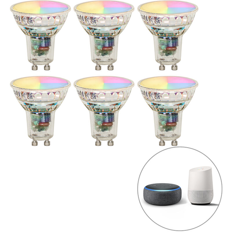 LUEDD Set di 6 lampade LED intelligenti GU10 RBGW 4,5W 350 lm 2700K Cerchi lampadine intelligenti per il tuo soggiorno o la tua cucina? Allora questo set di 6 lampadine intelligenti con attacco GU10 fa al caso tuo. Questo tipo di lampadina funziona con il Wi-Fi e può essere facilmente controllata con lo smartphone. Questo ti permette di regolare facilmente l'intensità della luce (350 lumen) e il colore della lampadina. Molto utile per creare la tua atmosfera! Puoi anche impostare i colori della lampadina tramite l'app, perché ha RGB. Quindi scegli il tuo colore in casa! Ha un'altezza di 5,4 cm e un diametro di 5 cm. Assicura comodità e funzionalità nella tua casa con questo set di 6 lampadine LED! Gestisci e personalizza l'illuminazione con facilità con LUUMR. Questa app intelligente ti permette di controllare la tua lampadina intelligente con pochi tocchi. Crea l'atmosfera perfetta, gestisci il consumo energetico e imposta scene personalizzate, il tutto da un'unica app intuitiva.