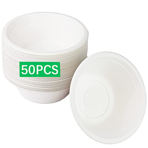 LUFEIS Ciotole di Carta Usa E Getta, 500ML Ciotole di Canna da Zucchero, Biodegradabili Ciotole di Carta, Ciotole Monouso per Alimenti, Rotondo Ciotole di Cartone per Feste, Matrimoni, Picnic (50 PCS)