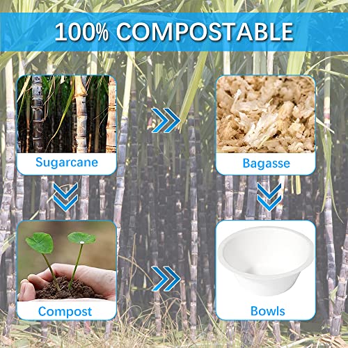 【Ampiamente applicabile】I ciotola per canna da zucchero sono più resistenti, impermeabili e resistenti all'olio. È più stabile dei normali piatti di carta ed è quindi adatto anche a più piatti. Puoi usare queste ciotole di carta usa e getta per zuppe, dessert, insalate, gelati e così via. Adatto per feste, matrimoni o uso quotidiano.