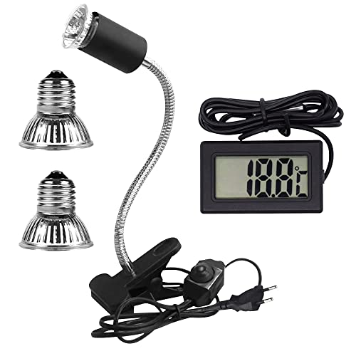 LUFEIS Lampada Riscaldante per Tartarughe, UVA UVB Lampada Riscaldante, Lampada Rettile e Anfibio con 3 Lampadine 25W, 50W, 75W, e 1 Termometro per Rettile, Anfibi, Tartaruga, Lucertola, Serpente