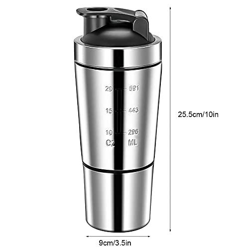 LUFEIS Shaker per Proteine, Shaker Bottle, Shaker Proteico con Sfera in Acciaio Inox, Agitatore in Acciaio Inossidabile, 600ML Tazza per Frullati Proteici, per Sport, Fitness e Regali