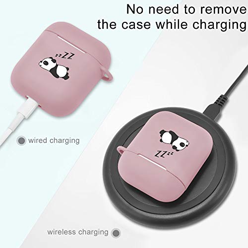 LuGeKe - Custodia per AirPod 1/2, con portachiavi, morbida custodia antiurto per AirPods 2 e 1, con motivo a panda, colore: Rosa