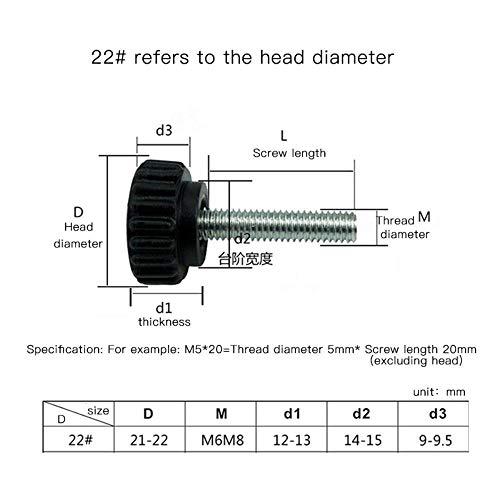 Luhuichang 20 pezzi M6 M8 22# plastica nera stringere la vite a testa zigrinata Knoba zigrinata Vite a mano Djusting, 20mm, M8