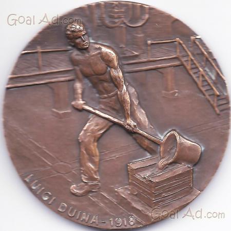 LUIGI DUINA nato a MILANO nel 1918. Grande e bellissima medaglia fusa da Johnson, attiva fin dal 1836, è la più antica fabbrica di medaglie in bronzo italiana, nel 1971 celebrava la fonderia Duina di Milano, raffigurante il capostipite Luigi. In conservazione splendida. Diametro 60 mm, peso 88,10 gr. Regalatami personalmente dal Presidente nella filiale di Perugia in quanto in quanto lui a quei tempi era proprietario di un castello medioevale che spesso visitava sul lago Trasimeno vicino Perugia.