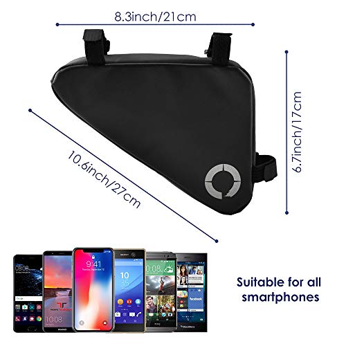 Cinghia su installazione e adatta a tutte le bici - Questa borsa da bici è facile e sicura da fissare con 3 fibbie e ganci regolabili. La borsa è adatta anche per la maggior parte delle bici da montagna, da strada e suburbane.