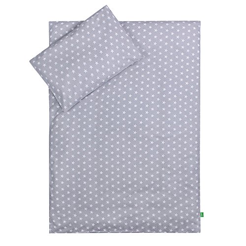 Lulando Lenzuola - Lenzuola per Bambini, Completo da 2 Pezzi: Cuscino e Copri-Piumino Tessuto Esterno 100% Cotone. Adatto per Lettino per Bambini da 70 X 140 Cm.Colore: Grey Stars - 400 g