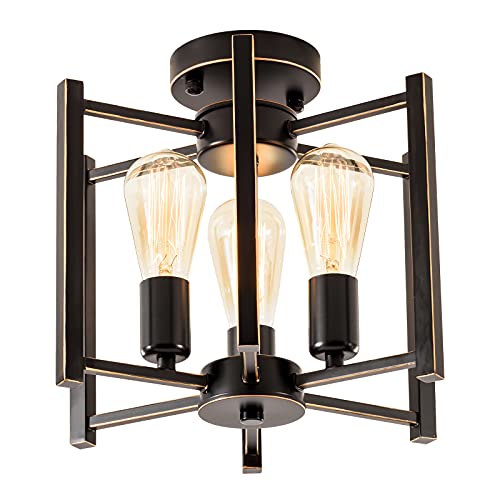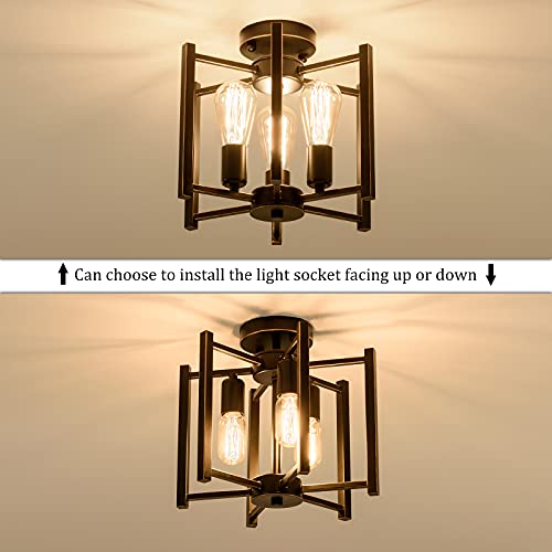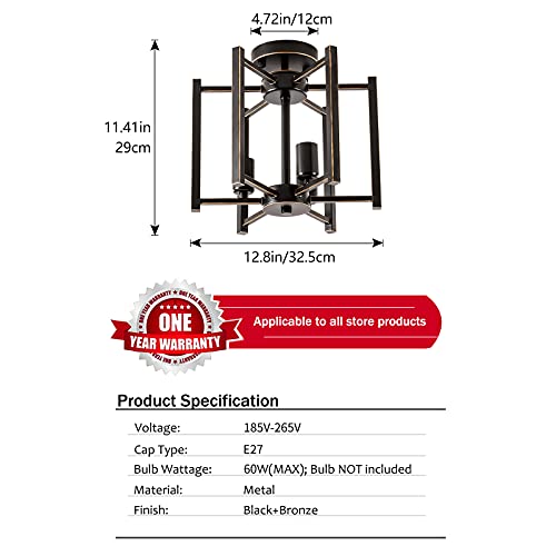 LULING Industriale Plafoniera 3 Socket, 32.5CM, metallo nero e bronzo, regolabile su e giù E27 Socket Candela lampadario corridoio, camera da letto, sala da pranzo cucina.(NO BULB)
