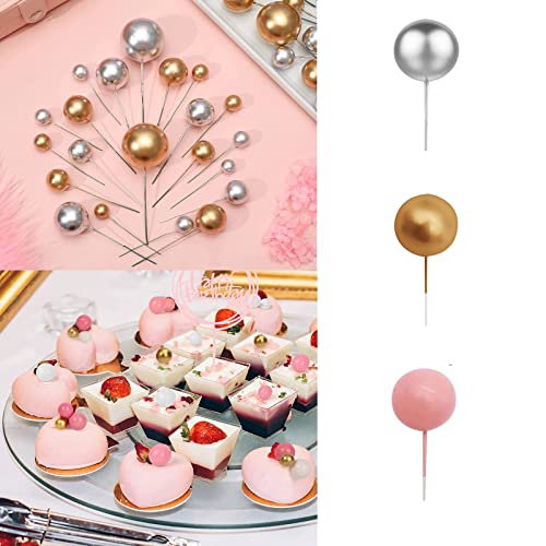 [Alta Qualità]:Le palline per la decorazione di torte sono realizzate in schiuma di alta qualità e filo metallico, non tossico, inodore, innocuo, colorato e molto resistente.Sicure per la decorazione di torte e dessert, possono essere applicate su torte, cupcake, gelati, frutta, dessert o qualsiasi piatto o alimento che si desidera decorare.