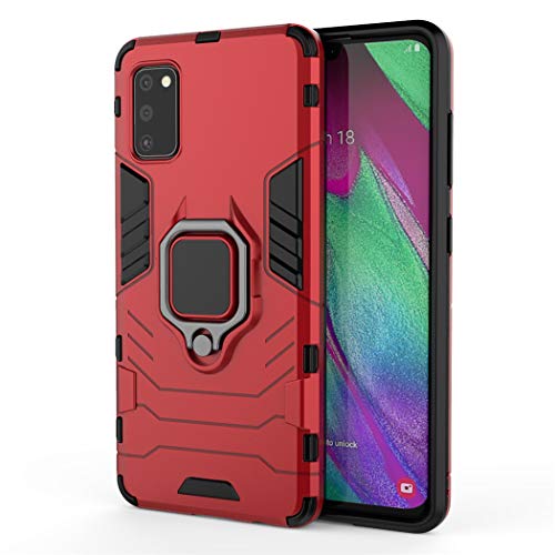 LuluMain Compatibile con Galaxy A41 Cover, Custodia Armor Anello Cavalletto (Funziona con Il Supporto Magnetico per Auto) Case Paraurti per Samsung Galaxy A41 (Rosso)
