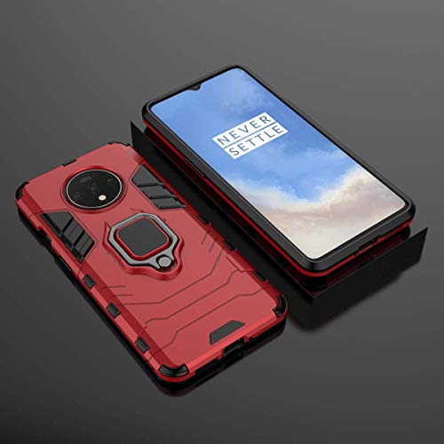 LuluMain Compatibile con OnePlus 7T Cover, Custodia Armor Anello Cavalletto (Funziona con Il Supporto Magnetico per Auto) Case Paraurti per OnePlus7T (Rosso)