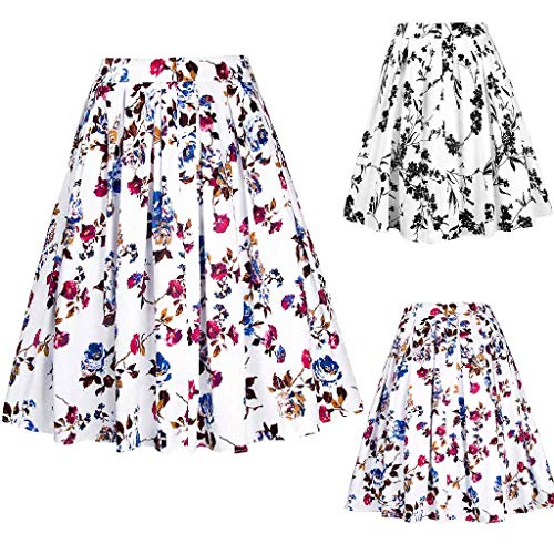 Lulupi Gonna a pieghe da donna, linea A, gonna a fiori, lunghezza al ginocchio, gonna da vacanza Nero XXL