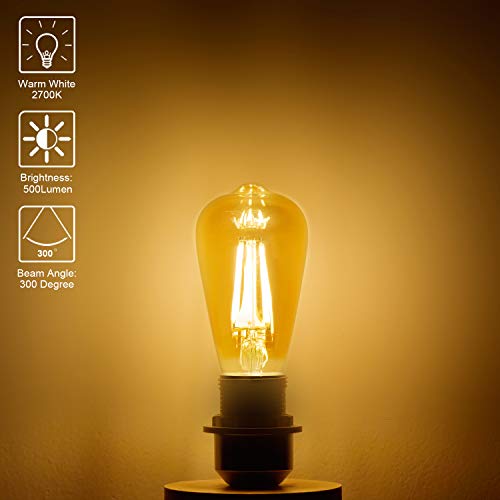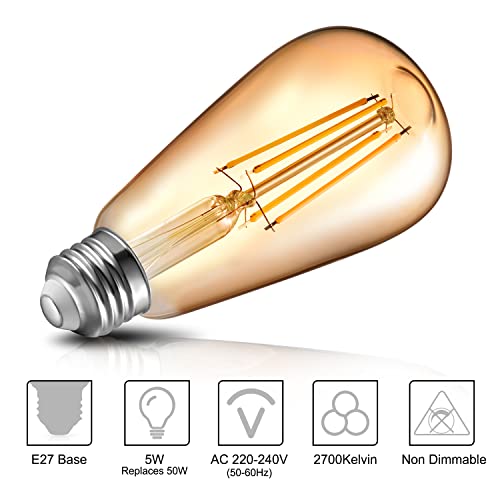 Eco.Luma 5W E27 Edison Vintage Lampadina, Bianco Caldo 2700K E27 LED Filamento Lampadine, Non Dimmerabile, Equivalente Incandescenza 40W 50W, Lampadine E27 LED Vintage AC220-240V, Confezione da 6
