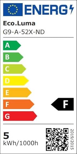 【Risparmio energetico, durata della vita lunga】 G9 LED bianco freddo Potenza: 5W, 460lm, Classe di efficienza energetica: A+, Ogni lampada può risparmiare 17,34€ all'anno e 90% di energia (basata su un utilizzo di 4 ore al giorno), perfetta sostituzione per lampadina alogena G9 40W. Emette meno calore e ha una lunga durata: 30000H, più sicuro e più affidabile dell'alogeno.