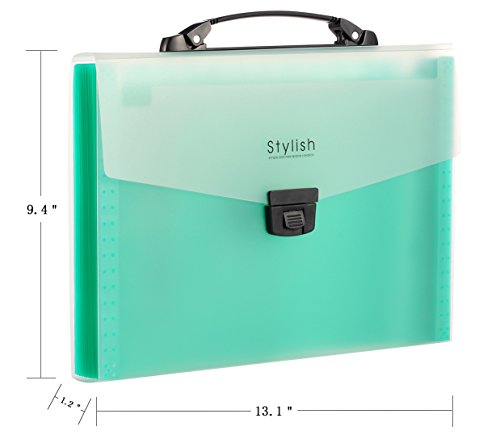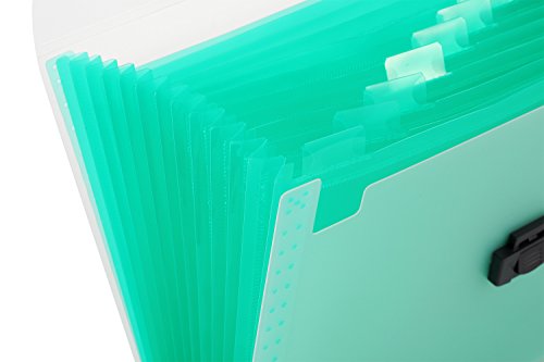 Lumaca & Hawk 13-pockets Poly Expanding Accordion file-folder con manico, formato A4, chiusura con fibbia (verde)