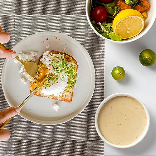 Facili da pulire: Le tovagliette sono progettate per essere lavabili, il che significa che puoi rimuovere facilmente lo sporco e le macchie. Puoi semplicemente sciacquarle con acqua e sapone o, se necessario, passarle sotto l'acqua corrente per eliminare le macchie più ostinate. La loro facilità di pulizia le rende ideali per un uso quotidiano senza dover preoccuparsi di macchie permanenti o di doverle sostituire frequentemente.