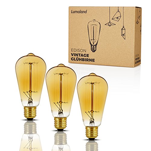 Lumaland lampadina Edison Stile Vintage Retro Lampada Decorativa lampadina ST64 gold 220V 40W, pacco da 3