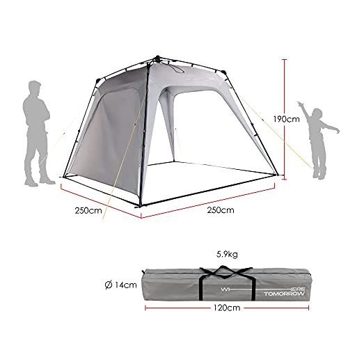 Lumaland x Where Tomorrow Tenda Padiglione + 1 Parete Laterale Inclusa - Tenda Gazebo da Giardino & Terrazzo Impermeabile - Ideale per Campeggio & Festival - Facile da Installare - Grigio Chiaro