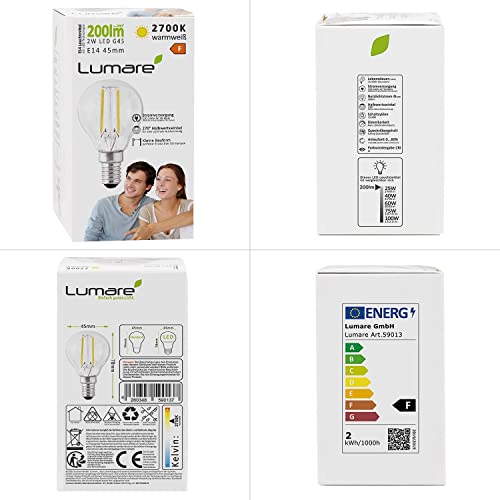 Lumare LED lampada a risparmio energetico E14 G45 | Set di 5 | Lampadina LED 2 Watt, 200lm | Lampadina che sostituisce la lampadina a incandescenza da 40 Watt | Bianco caldo 2700K