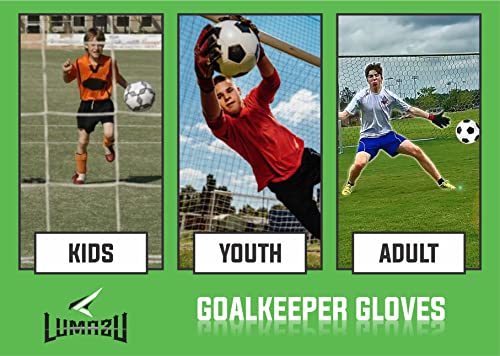 LUMAZU Guanti da portiere di calcio con impugnatura premium per bambini, ragazzi e ragazze con imbottitura per l'assorbimento degli urti per proteggere palmi e dita, guanti da portiere (6/7, Verd)