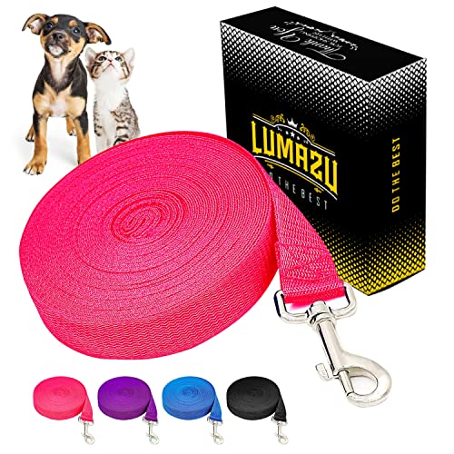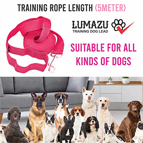 LUMAZU 5 meters long dog leash, large dog leash, Cat leash, nylon dog leash with anti-tangle buckle, lightweight and durable for walking training (Rosa)