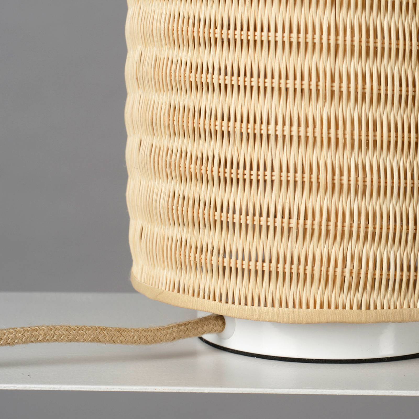 Lampada da tavolo Vlechtwerk con paralume cilindrico in midollino di rattan La lampada da tavolo Vlechtwerk è una fonte di luce armoniosa e naturale per il comodino o per diverse aree del soggiorno e della sala da pranzo. Il paralume di forma cilindrica è realizzato in vimini di rattan di colore naturale chiaro, un materiale che ha un effetto molto decorativo quando la luce è accesa o spenta e crea un'illuminazione d'atmosfera. La lampada da tavolo Vlechtwerk è dotata di un cavo tessile di colore beige lungo 200 cm con spina e interruttore ed è prodotta con responsabilità ecologica e sociale, passione e impegno. L'eccellente lavorazione rende la lampada, prodotta in Germania, un elemento d'arredo che darà piacere per molto tempo.