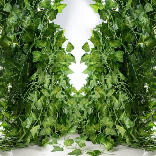 Lumeiy Edera artificiale - 24 fili (ogni 15,56 piedi) finta edera foglie di vite ghirlanda da appendere con 100 fascette verdi per matrimoni, feste, giardino, casa, decorazione da parete