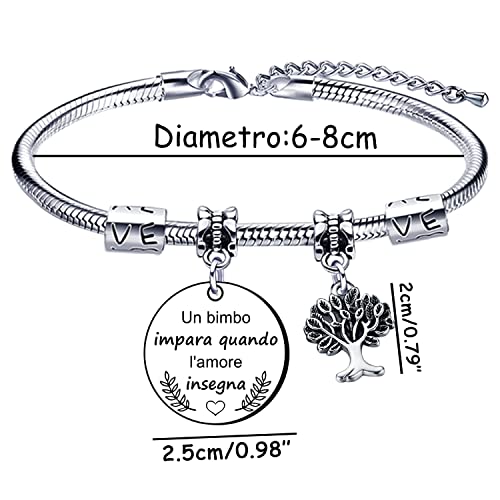 Lumengqi Bracciale Insegnante Regalo Insegnante Braccialetti Insegnante"Un Bimbo Impara Quando l'amore Insegna"Grazie Maestro per il Regalo Incisione Bracciale Regali di Laurea Compleanno