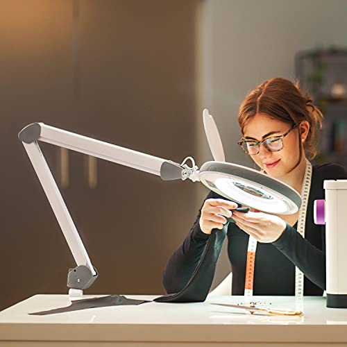 Lumeno Lampada d'ingrandimento LED dimmerabile serie 851X, lente di vetro grande 152 mm in 3 o 5 diottrie Lampada da lavoro, Luce cosmetica 3 diottrie grigio