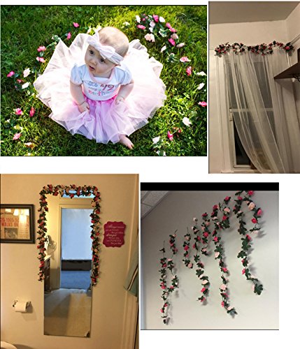 LumenTY - Ghirlanda di rose rampicanti artificiali per casa, matrimoni, giardini, feste di compleanno e decorazioni varie, colore: viola chiaro e scuro (confezione da 2), Pink, Rosa