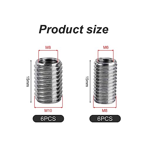 LumenTY 12 Pezzi Boccole Filettate per Metallo Inserti Filettati M6 x 15 mm e Filettatura M8 x 15 mm Dado di Inserto Filettato Riparazione Filettati