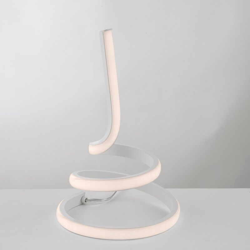 Collezione Nodo DESIGN MODERNO E CONTEMPORANEO Lumetto moderno in metallo e alluminio verniciato bianco con led integrato. Riccioli di luce led che caratterizzeranno in modo unico e distintivo ogni ambiente. Nuovo concetto di illuminazione dal design distintivo per arredare o rinnovare ogni ambiente di casa o di lavoro. Design, efficienza e altà qualità per questa lampada da tavolo.