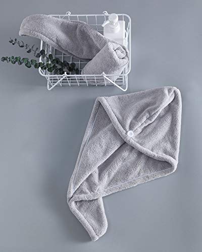 Lumimi - Set di 2 turbanti per capelli, in microfibra, ultra assorbenti, asciugatura rapida, chiusura a bottone, colore: Rosa grigio