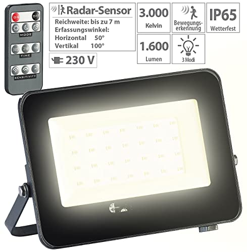 Luminea Illuminazione per esterni - Luce esterna: Proiettore LED resistente alle intemperie, Sensore di movimento radar, Telecomando, 20 W. (Luce esterna Con telecomando)