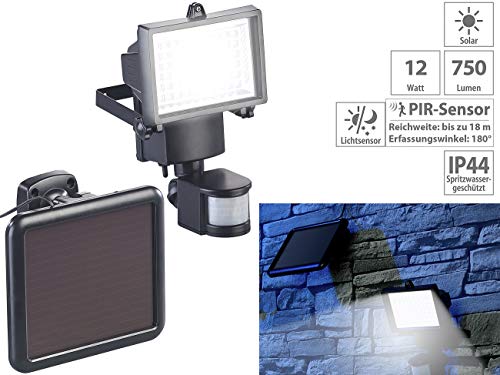 Luminea Solare Fari: Wall Washer LED solare per esterno, con sensore PIR, 12 W, 750 lumen, IP44 (Solare GUIDATO Wallwasher, GUIDATO Faretti Solare, Luce solare sensore di movimento)