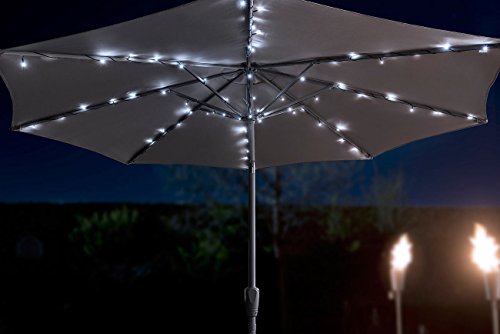 Ombrellone lucine incluso pannello solare, Supporto per staffa per pannello solare, Picco di terra, 40 fascette per cavi e istruzioni in tedesco/francese/spagnolo/italiano. ombrello Con luci fatate - Anche rilevante o appropriato per: Illuminazione da giardino, Illuminazione solare, Lampade giardino, Tubo leggero, Luci solari, Lampada paralume, Ombrelli, Luce solare, protezione solare, protezione dalla pioggia, Al netto delle luci, luce elettricità, Tendalino, Ombrellone