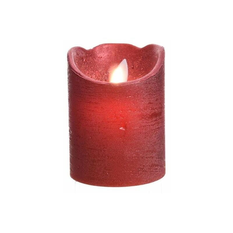 Candela interna a led Funziona con batterie 2xAA non incluse Misure: 7,5x10cm Colore rosso: finitura metallica Programmatore 6 ore. 250 ore di durata