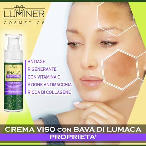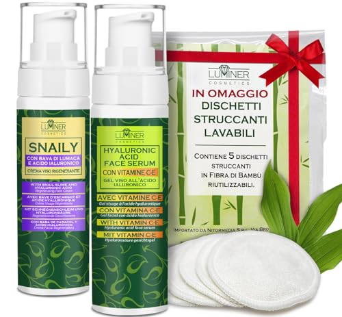 LUMINER - 50ml Crema Bava Di Lumaca viso al 70% + 50ml Acido Ialuronico Viso, Siero Viso Acido Ialuronico, Trattamento Intensivo/Idratante, Antietà e Antimacchia, Con 5 Dischetti Struccanti Bambù