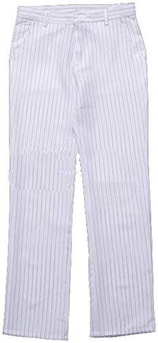Tuta critica classica bianca liscia, i prodotti includono: cappotto a righe bianche, pantaloni a righe bianche, camicia blu, cravatta bianca.