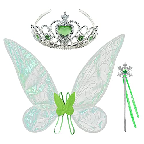 Luminiu Set Ali di Fata E Bacchetta - Grandi Ali di Farfalla Grandi con Corona - Dress Up Birthday Party Wedding Accessories Sparkle Princess Wings with Crown Wand Set Large Pink Blue Green Purple