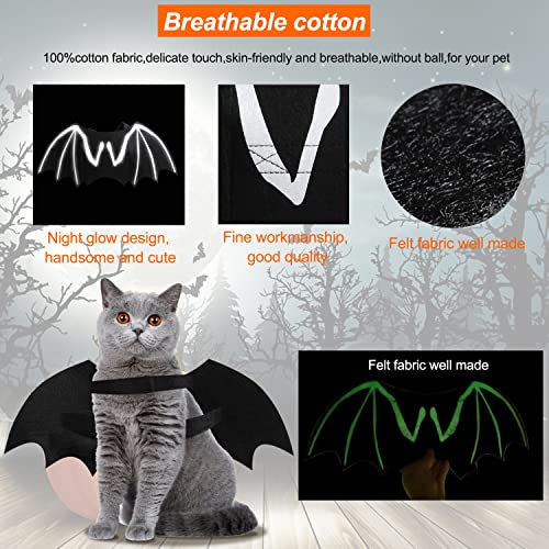 Luminoso design delle ali di pipistrello:Esclusivo design fosforescente, ali di pipistrello che brillano nella notte.Indossare halloween ali pipistrello, con 2 campane, rendete il vostro animale domestico il protagonista di Halloween.
