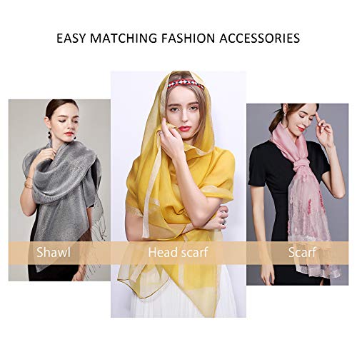 TESSUTO: La sciarpa è realizzata in organza e tessuto di seta, che è morbido e soffice.Spessore moderato, con i vantaggi di calore e traspirabilità.Nessun senso di peso quando indossato, ti offrirà un'esperienza leggera e confortevole.