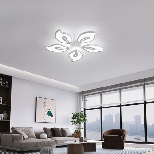 Lumiup Plafoniera LED Soffitto Dimmerabile, 33W Plafoniera LED Fiore con Telecomando, 3000K-6500K Lampadario Soggiorno Acrilico, Lampadario LED per Sala da Pranzo, Cucina (5 Luci/Ø66CM)