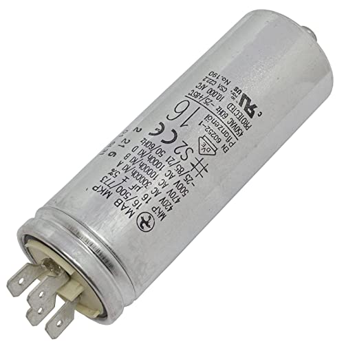 Lumonic condensatore di avviamento Hydra MKP-500 16-A [incl. spina 6,3x0,8mm] | condensatore motore 16µF 420V 35x98mm I condensatore con custodia in m